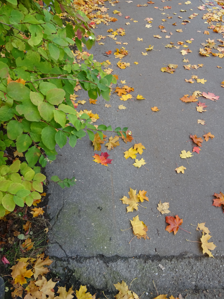 Maassa olevia lehtiä ikuistin Sankaripuistossa, jossa on hautoja 1800-luvulta. Hautausmaalla on tarinassa merkittävä rooli, joten on hyvä, ettei unohdu, miltä pihlajanlehtien peittämä maa näyttää.